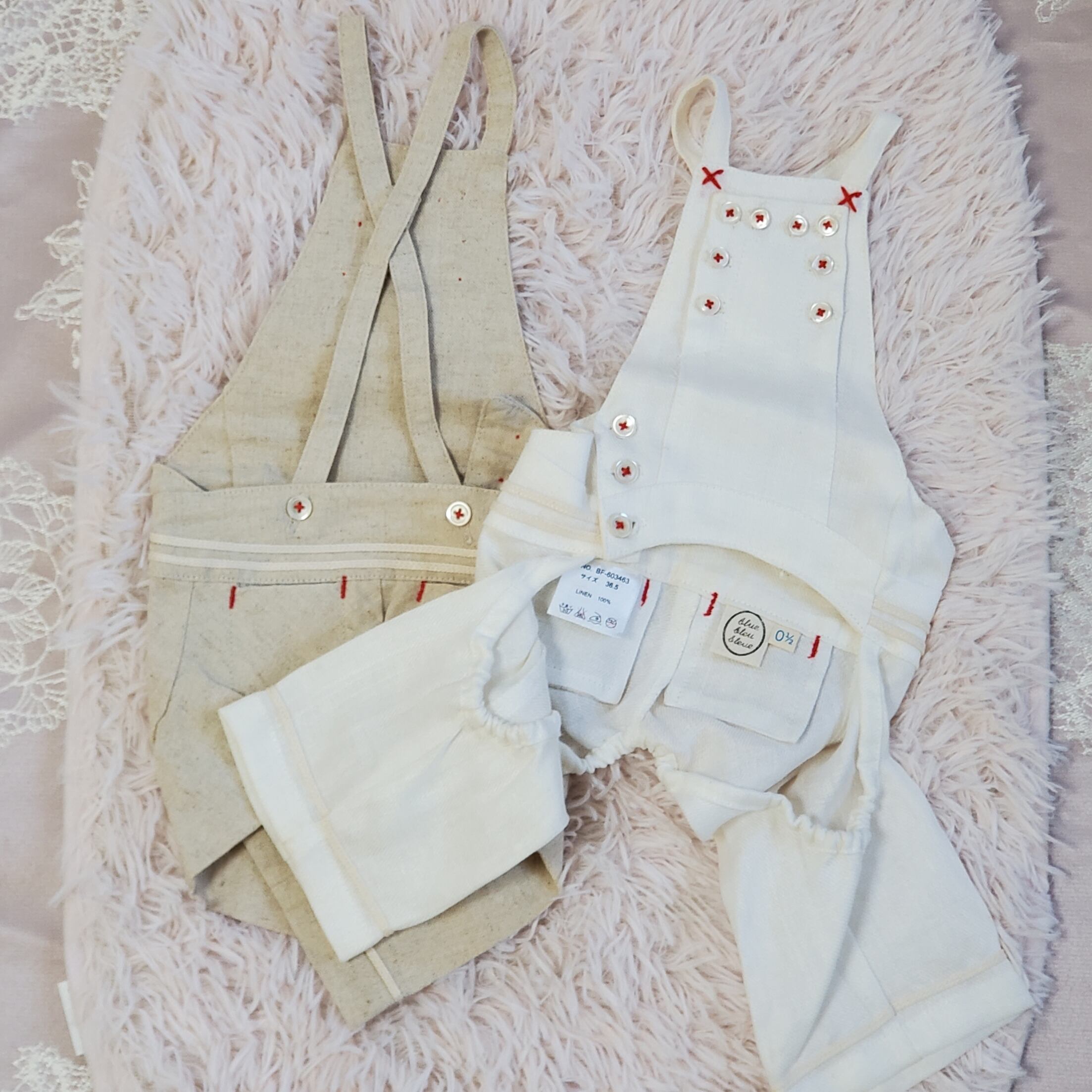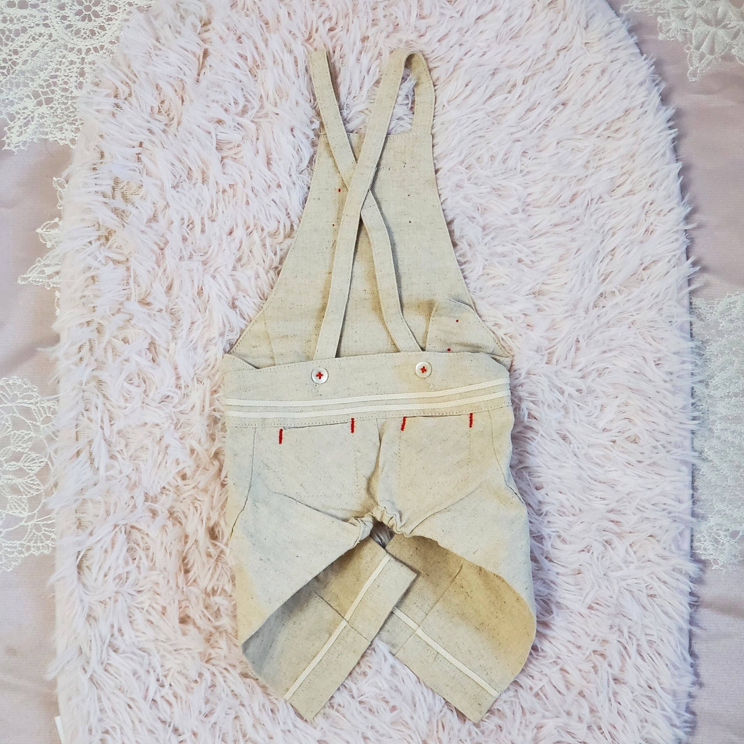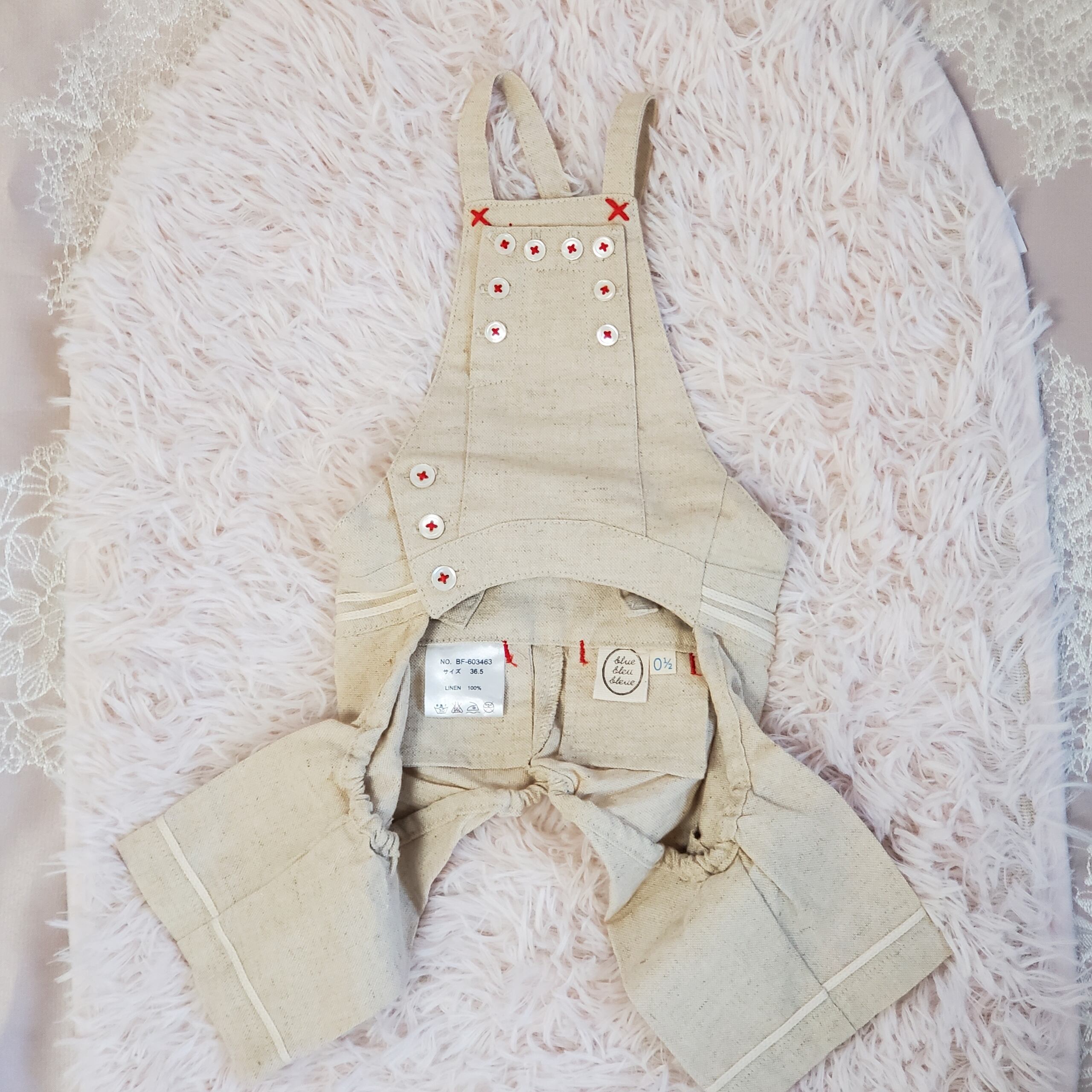 肩ひもはウエスト部でボタン止めになっているので、ボタンの位置を変えて調整が可能です。