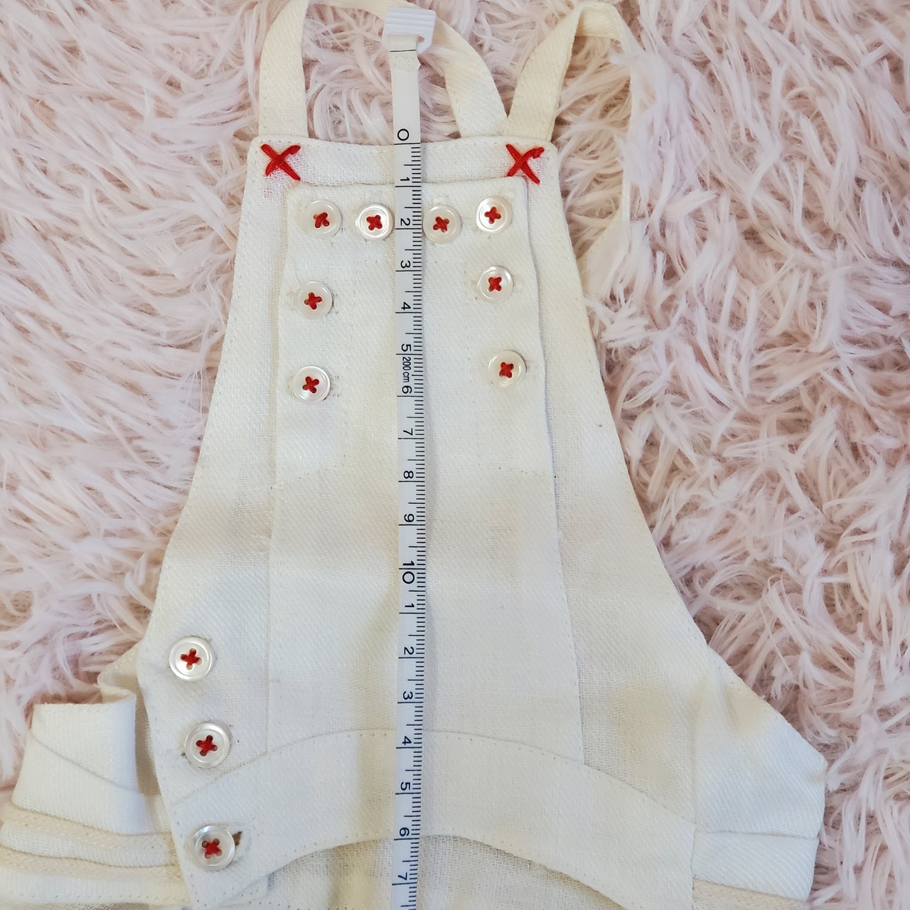 肩ひもはウエスト部でボタン止めになっているので、ボタンの位置を変えて調整が可能です。